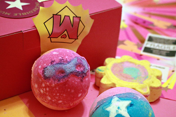 Can we also notice about how cute this bath bomb looks with the eye mask and cape?